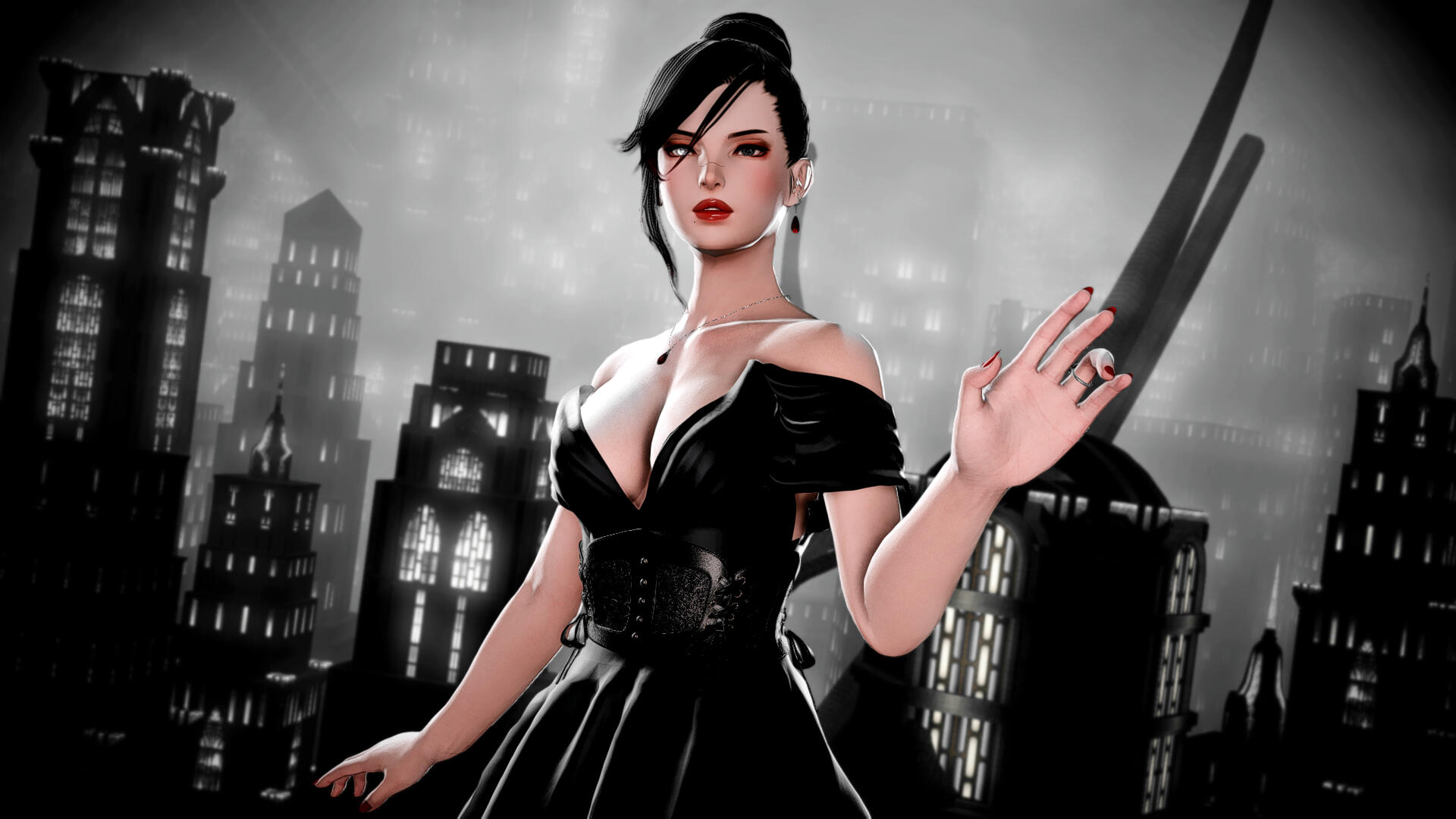 The top floor of Aeon Dark is dedicated to Diavola's favorite colors: Black and Red! This floor features clean, graphical sets with eye popping color and moody lighting.